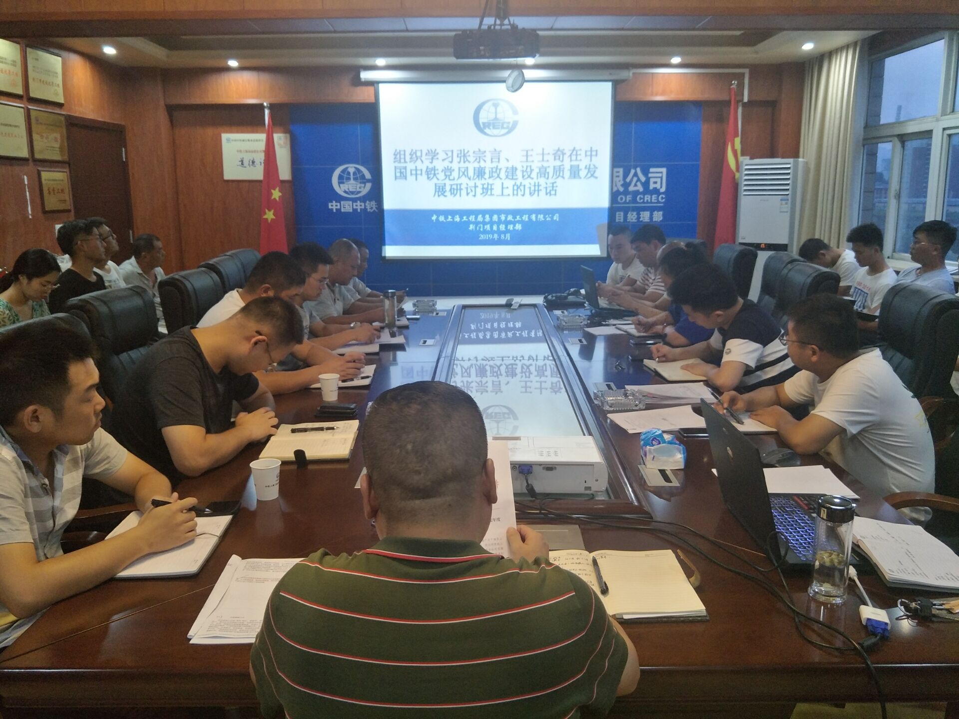 荊門項目黨支部、沈陽區域項目部組織宣貫張宗言總裁在中國中鐵黨委“三基建設”現場會議上的講話及張宗言、王士奇在中國中鐵黨風廉政建設高質量發展研討班上的講話