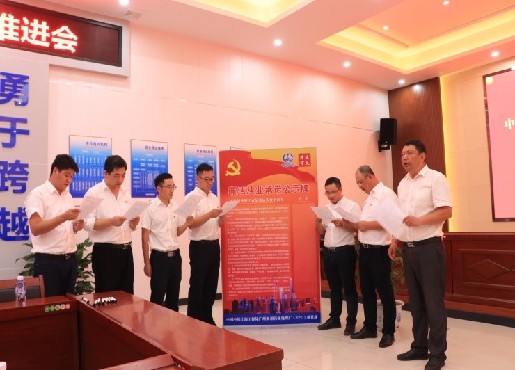 5月23日,公司第三屆企業文化節“清風市政”—項目部領導人員廉潔從業公開承諾活動在廣州瀝滘污水處理廠(EPC)項目部舉行,公司黨委書記尹朝援宣布了市政公司項目部領導人員廉潔從業公開承諾活動正式啟動,公司總經濟師王小波、機關黨群各部門人員及項目部主要管理干部參加了啟動