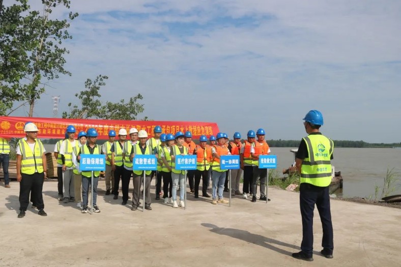 6月25日,赤壁市長江取水工程工程總承包項(xiàng)目部開展水上應(yīng)急救援演練。...