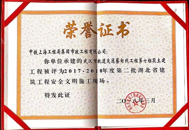 日前,從湖北省建設(shè)工程質(zhì)量安全協(xié)會(huì)傳來(lái)喜訊,中鐵上海工程局集團(tuán)市政公司承建的武漢市軌道交通蔡甸線工程第七標(biāo)段土建工程榮獲“湖北省建筑工程安全文明施工現(xiàn)場(chǎng)”榮譽(yù)稱號(hào)...