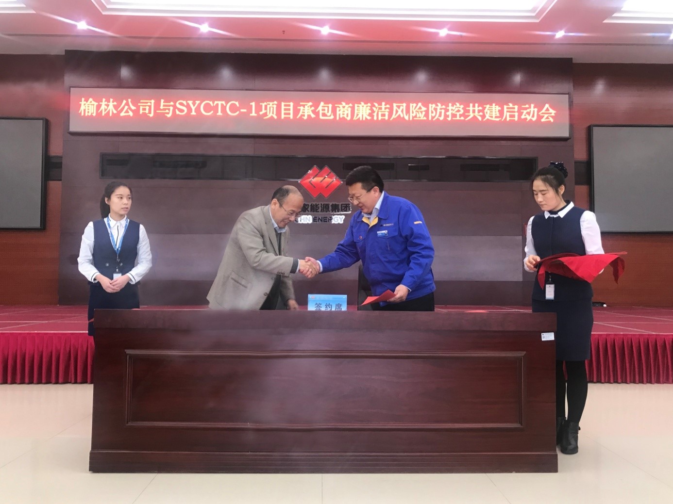 11月30日,神華榆林能源化工有限公司與SYCTC-1(循環(huán)經(jīng)濟(jì)煤炭綜合利用一階段)項(xiàng)目承包商廉潔風(fēng)險(xiǎn)防控共建活動(dòng)啟動(dòng)會(huì)在榆林市榆神工業(yè)區(qū)召開。公司副總經(jīng)理李明華作為14家參建單位代表之一,就共建內(nèi)容進(jìn)行簽約并作表態(tài)發(fā)言。