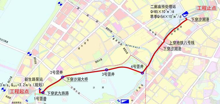 武漢長江、沙湖水環(huán)境提升工程是國家“長江大保護”戰(zhàn)略部署以及武漢水環(huán)境治理重要一環(huán),也是湖北省內首次實施的最大直徑頂管工程。工程主線起于新生路污水泵站,穿越武九鐵路后,沿沙湖北岸線、沙湖公園、沙湖大道走向,進入二郎廟污水預處理站,中間由5780米長的大口徑地下管道相連。