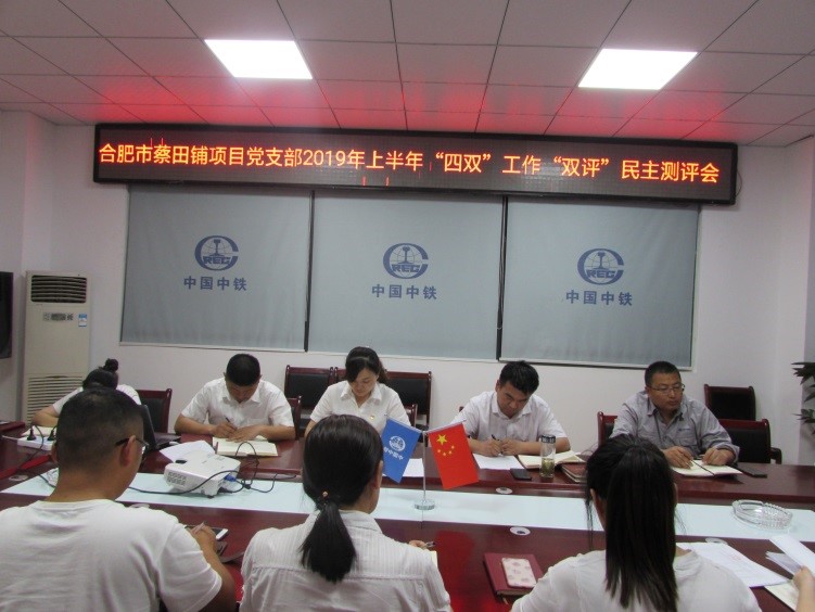 615日,合肥蔡田鋪項目黨支部召開2019年上半年“四雙”工作“雙評”民主測評會議。會議由項目副書記主持,項目部全體職工參加。(朱天娥)