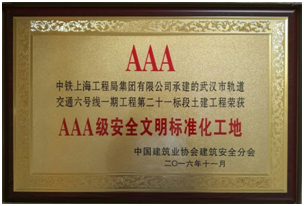 11月30日, 2016年度全國“AAA級安全文明標準化工地”表彰大會在安徽合肥召開,公司承建的武漢軌道交通六號線一期第二十一標段土建工程喜獲本年度“AAA級安全文明標準化工地”。武漢市軌道交通六號線一期第二十一標段土建工程位于武漢市東西湖區金山大道,包括環湖西路站、金銀湖停車場以及出入場線區間,合同總造價50258萬元。自開工建設以來,項目部高度重視現場文明施工和標準化管理,施工過程中嚴格落實行業各項管理制度和中鐵上海局各項安全管理內控制度。項目部以安全生產責任制為核心,建立健全安全文明施工管理制度及保證體系,狠抓全員安全教育培訓和班組長安全質量責任制工作,通過全員安全教育、安全技術交底、開辦農民工夜校、班前安全講話、事故案例學習、月度大檢查等多種形式,營造濃厚的安全生產氛圍,提高員工安全質量意識和文明施工意識,確?,F場安全生產。