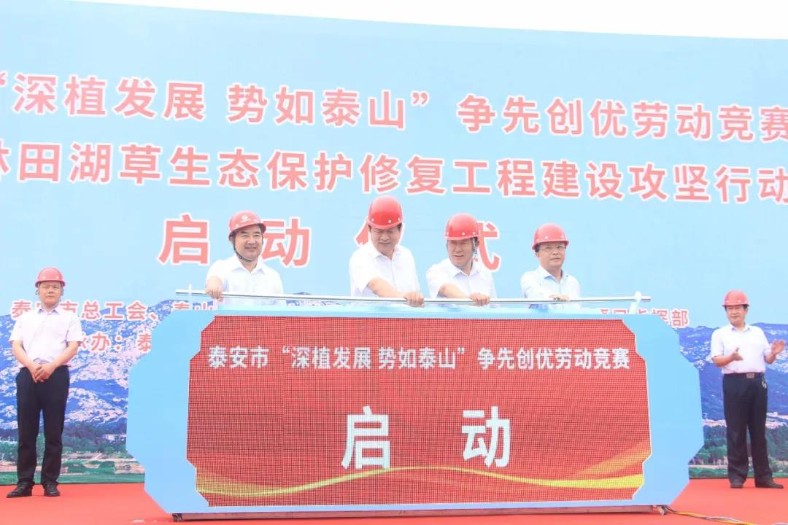 6月9日,泰安市“深植發(fā)展 勢如泰山”爭先創(chuàng)優(yōu)勞動競賽,在集團公司中鐵泰城水生態(tài)環(huán)境治理項目施工現(xiàn)場舉行。