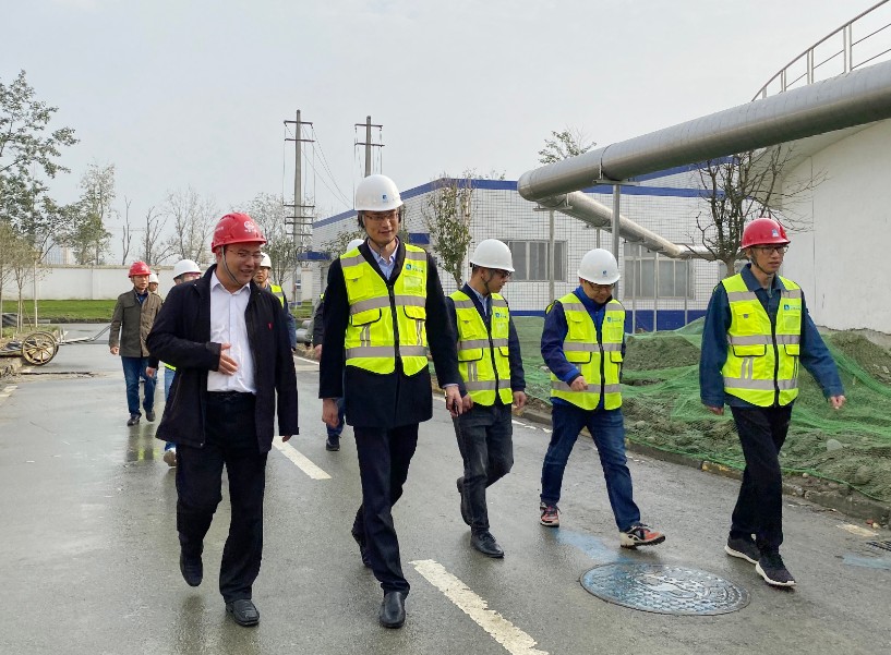 11月19日,北控水務集團黨委副書記、紀委書記李艾一行到成都市合作污水處理廠一、二期提標改造工程施工現場檢查指導工作,公司副總經理岳立章陪同檢查。