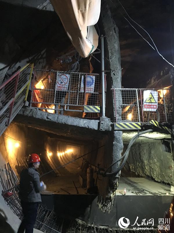今日下午,記者來到西南交大旁邊的地鐵施工工地,在工作人員的帶領(lǐng)下,下到地下18米的地鐵施工現(xiàn)場。記者看到,隧道洞口被一分為六,隧道內(nèi)約20米深處傳來了施工人員作業(yè)的聲音。