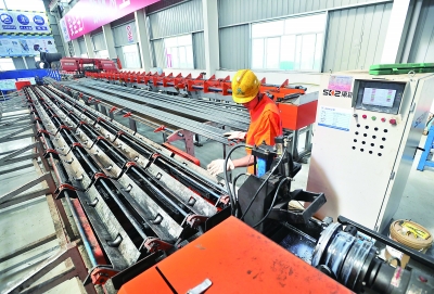 一名工人操作智能鋼筋套絲機(jī)器人加工鋼筋端頭的螺紋 記者李永剛 攝